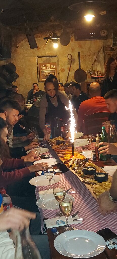 Kasnije je usljedila večera, zvonce za znak dolaska mesa je radilo više puta, redale su se plate od 2 metra dok se nije sve pojelo, a onda su krenile i repete. Mislim da se stvarno moglo najest i napit i lijepo podružit u prostorijama Konobe Rudine. Za pjevački repertoar pobrinili su se tko drugi nego Samo Zabavljači, nizali su hit za hitom, a ovo je samo dijelić atmosfere koji je vladao :